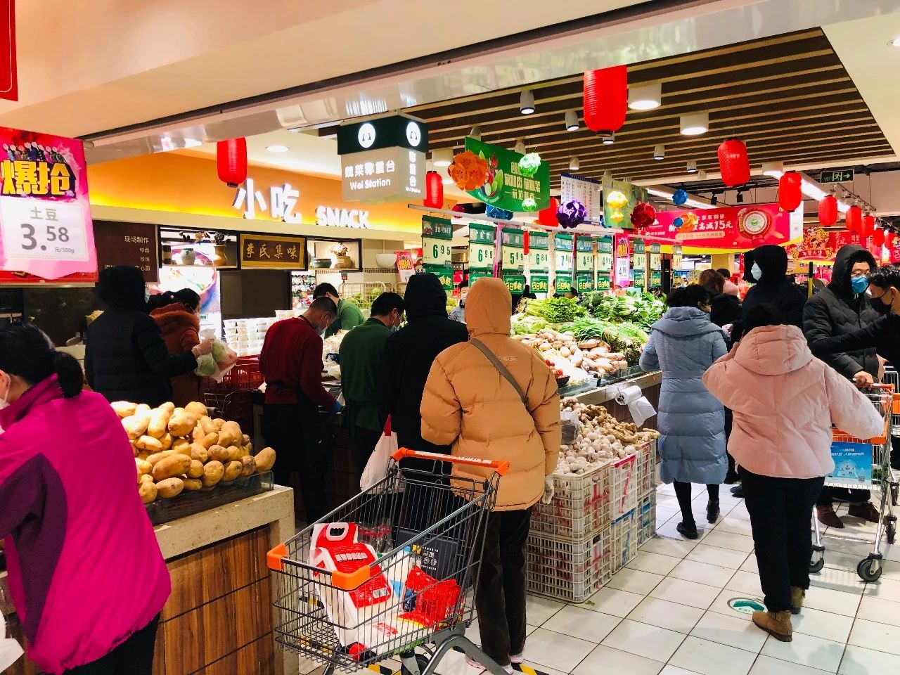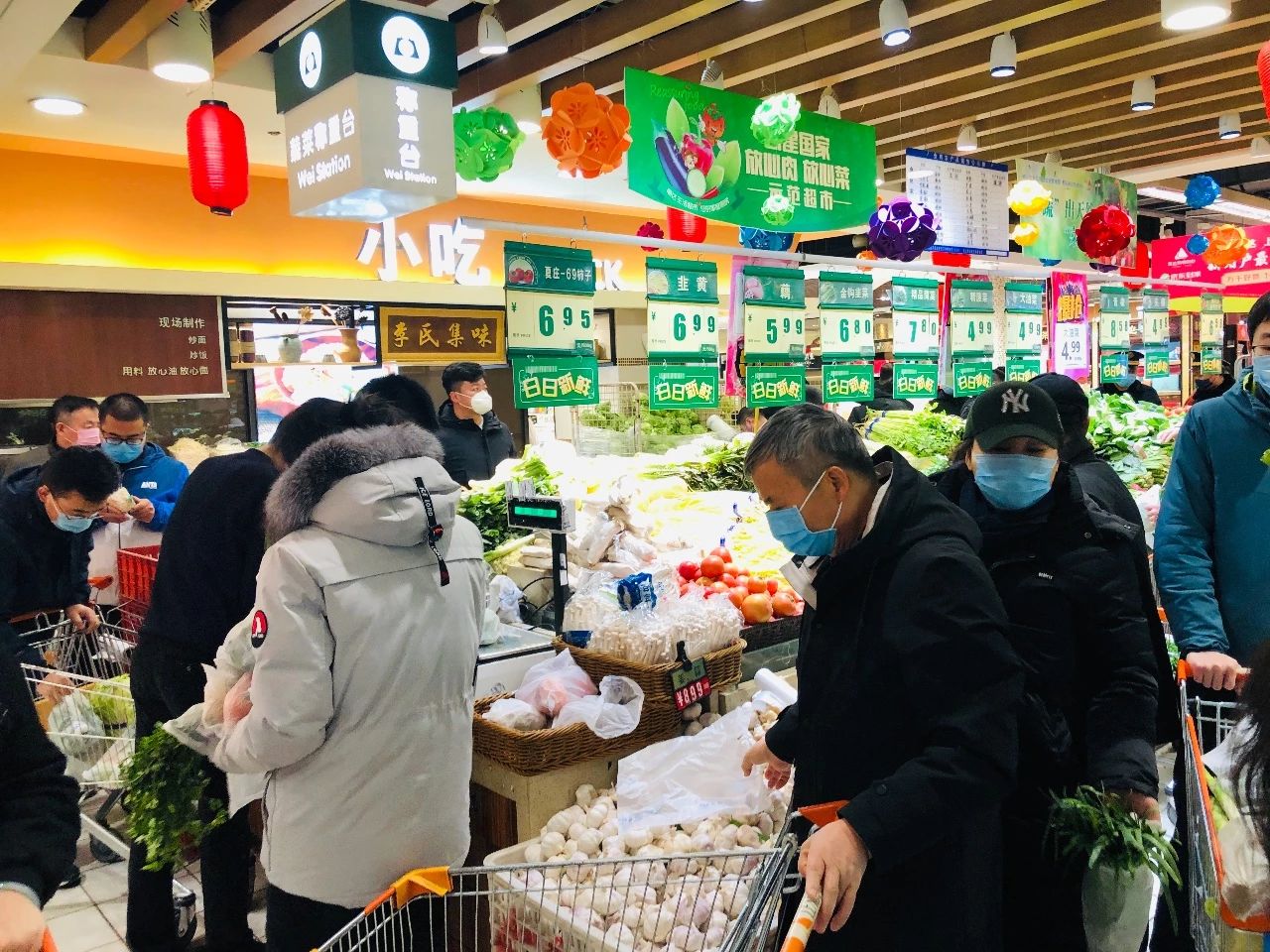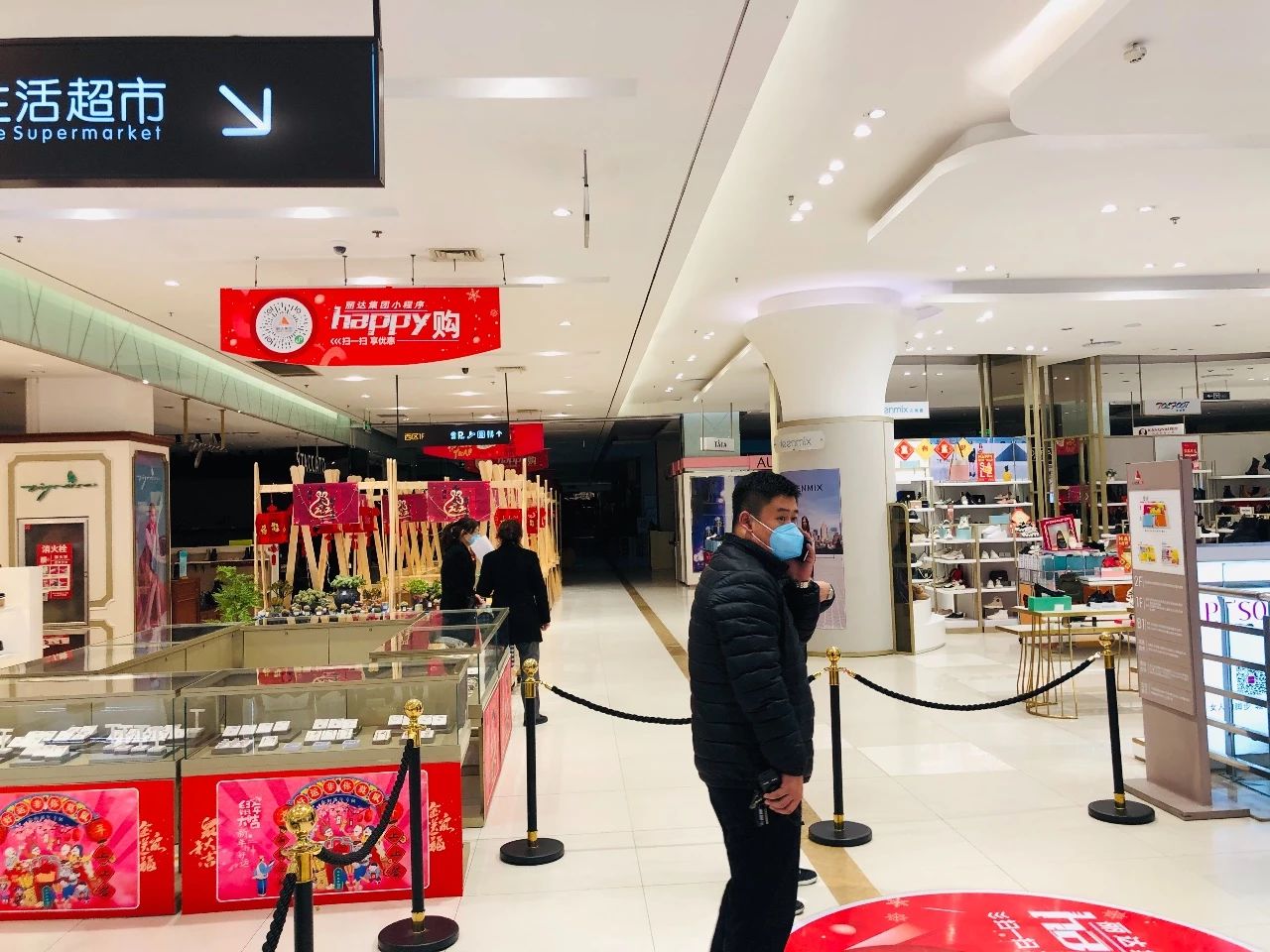 超市人比平时少多了,服务员倒是不少,可能单位各部门来支援的不少吧。