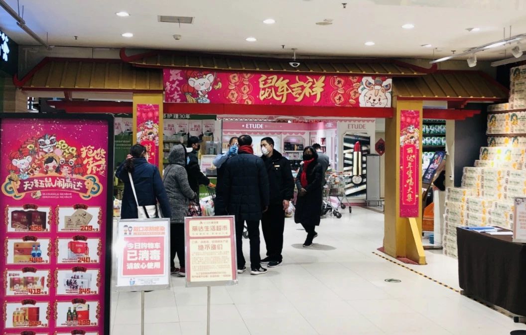 进入超市的人必须有口罩,体温正常才可以进入。