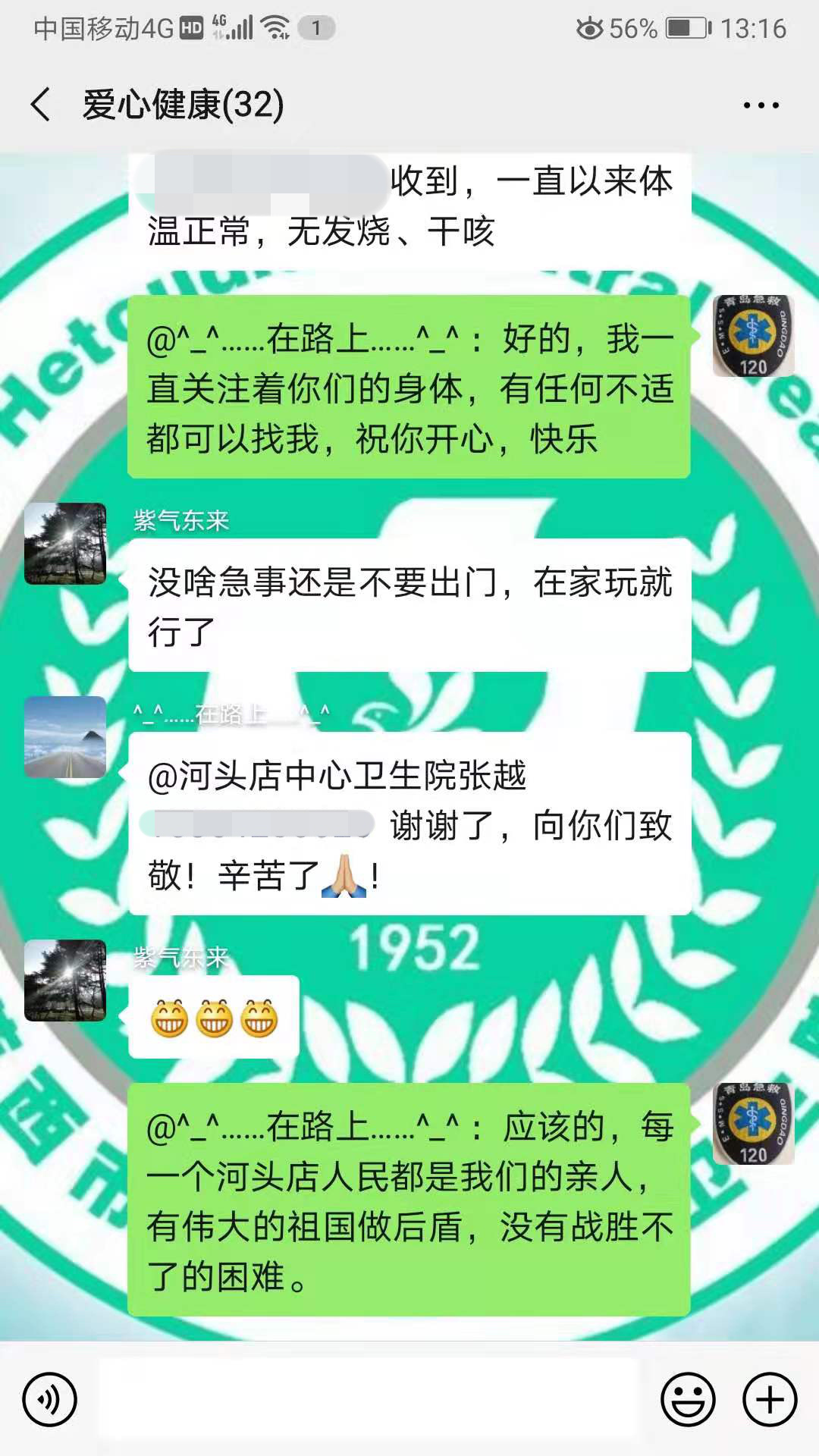在河头店镇党委政府的领导与协助下,张越主动建立了微信爱心健康群,为全镇武汉湖北返乡人员提供24小时解答医疗问答、指导科学防疫、心理疏导。全身心的关心居家隔离人员,受到了群众的一致感谢。