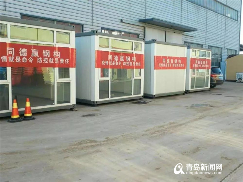 疫情发生后,南村镇疫情防控物资生产有关企业迅速行动,加班加点、戮力同心,全力支援我市疫情防控。青岛同德赢钢结构工程有限公司总经理綦家蔚,拿出35套防疫检测房,价值约70万元,用于政府,医院,村庄应急,供镇政府统一调配,为抗击疫情提供有力保障。战“疫”面前,这位年轻的公司总经理说道:“我们拿出100%的信心和行动积极参与共同抗击疫情,只要我们万众一心,就没有翻不过的山;心手相牵,就没有跨不过的坎。”
