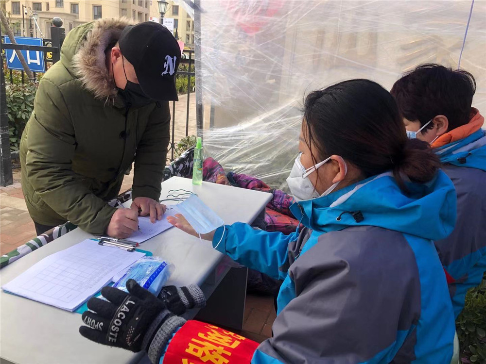 党员干部冲在前,严防死守无疫情。抗击疫情的战鼓擂响,党旗第一时间出现在各社区门岗上。红埠、蓝家庄等社区迅速成立先锋突击队、设立党员先锋岗驻扎在社区主要主入口。24小时绝无一刻漏岗、空岗,严防死守,逐一登记每一位出入社区的居民、访客及车辆信息,并为每个人测量体温,监督提醒戴口罩,细心劝阻外来到访探亲人员,对于体温异常的跟进服务,做到“外防输入”;做好摸底排查工作,开展地毯式排查,重点对返乡人员,特别是湖北返青人员及有湖北旅居、出差史的人员,派党员一对一进行重点管理与服务,确保不漏一家、不漏任何一员,坚决做到“内防扩散”。