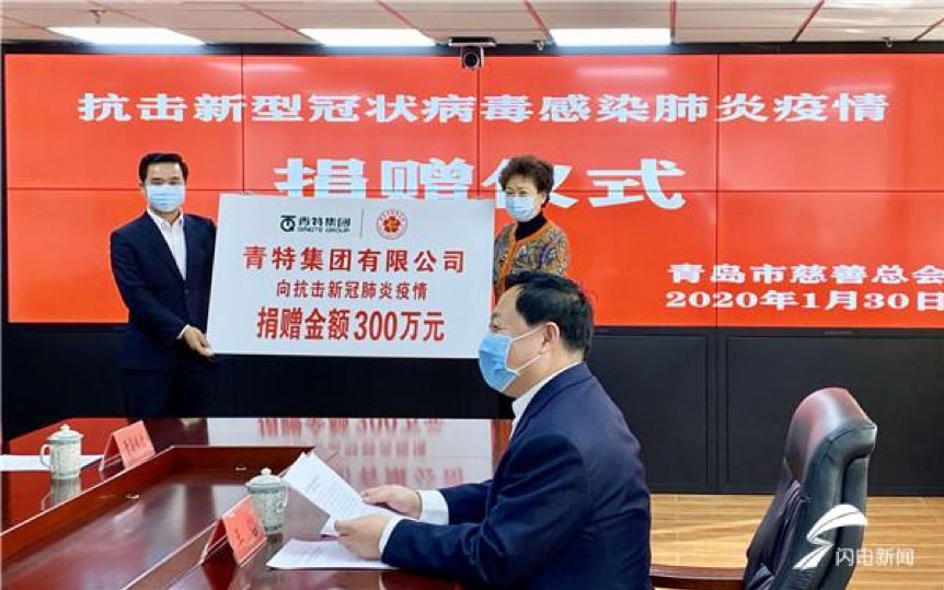 青特集团向青岛市慈善总会捐赠300万元,这笔善款将用于青岛抗击新型冠状病毒感染的肺炎疫情所需的各种紧急救助。