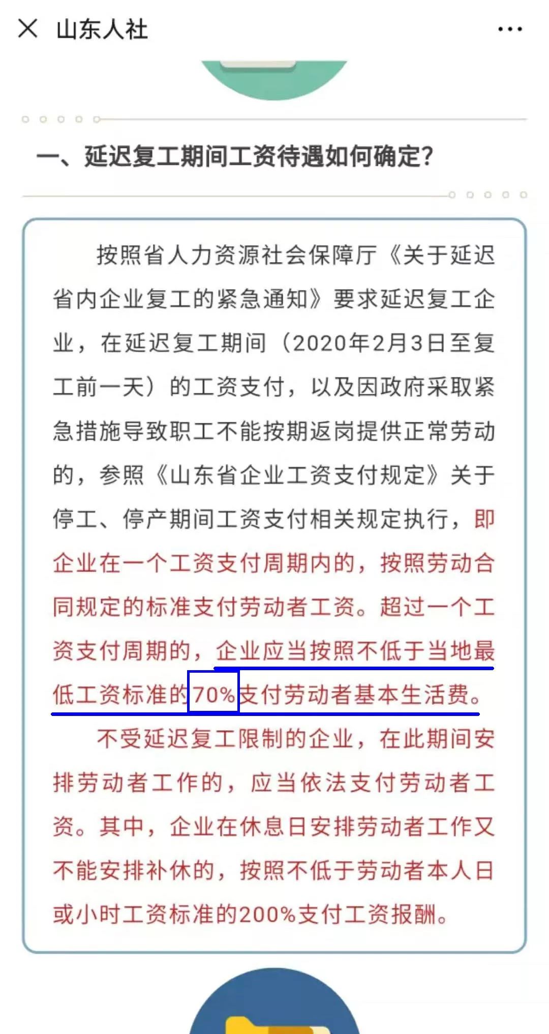 山东省规定70%,青岛市规定80%,这又是怎样一种情况?那是因为2020年1月27日,咱市人社局发布的《关于妥善处理新型冠状病毒感染的肺炎疫情防控期间劳动关系问题的通知》中对此进行了规定: