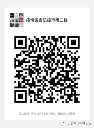 现将疫情谣言防控微信群二维码公布如下,请广大网民、媒体朋友积极参与,根据所在辖区加群,举报网络谣言、参与辟谣工作。让我们齐心协力,共同打赢这场无硝烟的战争!市南疫情防控群二维码
