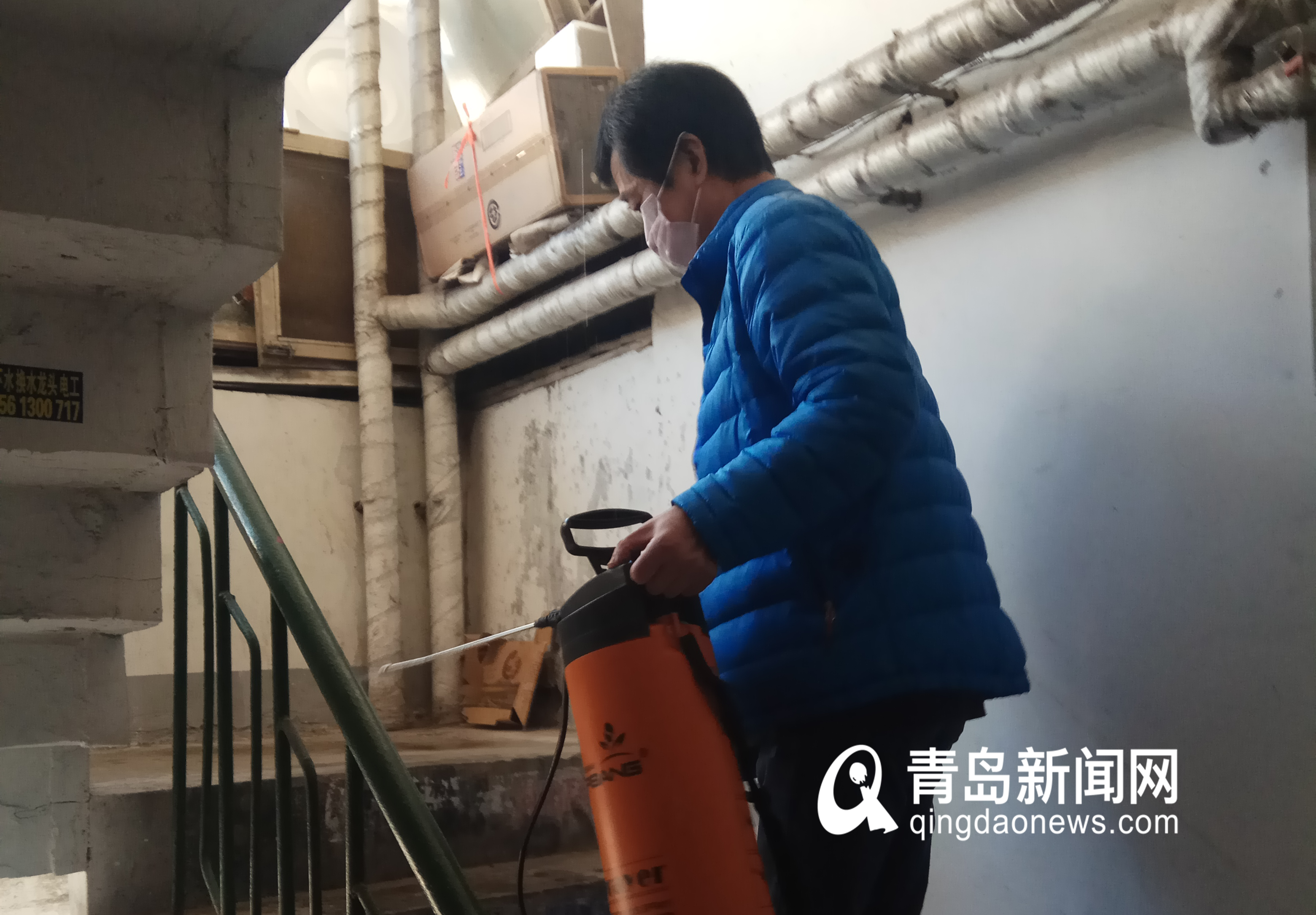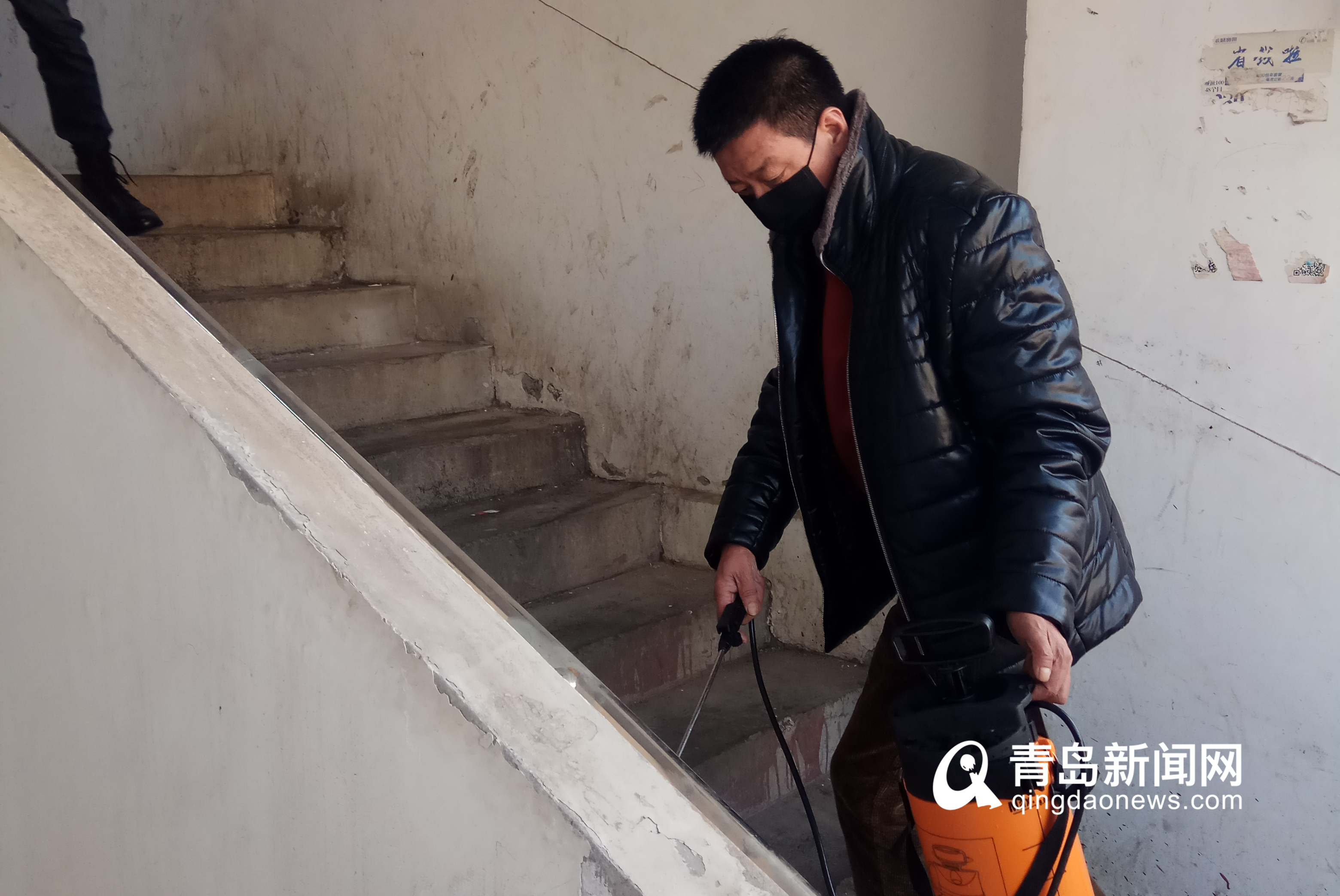 姚玉柱和孙卫平是即墨路街道陵县路社区的公益性岗位退役军人,听闻疫情他们放弃春节在家的安逸主动请缨,要求参与到防疫工作的第一线。他们拿起消毒设备,与街道社区工作人员深入到小街小巷进行消毒喷洒卫生防疫,在疫情防控点逐一做好人员检查,在楼道、商户门前、宣传栏张贴宣传海报。