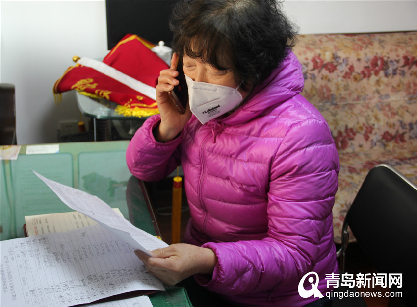 72岁的刘云秋是市北区宁夏路街道台湛路社区第四网格的党支部书记,负责着社区最大的一个网格,752户居民,为了做好疫情防控工作,刘云秋事事亲力亲为,打电话、贴海报都少不了她。台湛路39号1号楼和43号没有楼长,也没有准确的联系方式,她和组员只能分头入户,通过对讲门落实情况;实在联系不上的,就在家门口贴上温馨提示,方便住户一回来就能跟社区联系。