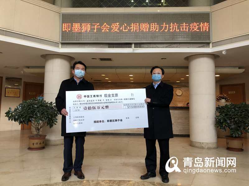 “狮子会是公益慈善组织,我们200多名会员遍布社会各界,都在做自己力所能及的贡献,从大年初一到今天募捐了15万元,我们上下一心,众志成城,在这场一定能赢的保卫战中做出自己的贡献。”中狮联青岛代表处即墨分区党支部书记杨显军说。