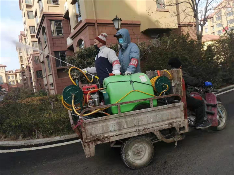 园区消杀突击队,由社区党员、居民代表、卫生工作人员、巾帼志愿者组成,主要负责每日社区小区内卫生消杀工作。