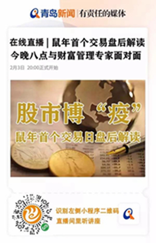 鼠年股市今天上午开市,受疫情这个“黑天鹅”影响,上证综指当天下跌7.72%,深成指跌8.45%,近3000股开盘跌停,多只医药股逆市涨停。面对汹涌来袭的疫情,股债两市未来走势将受到怎样的影响?投资者应该如何应对?青岛新闻网“理财课堂”将为岛城市民全面解读!