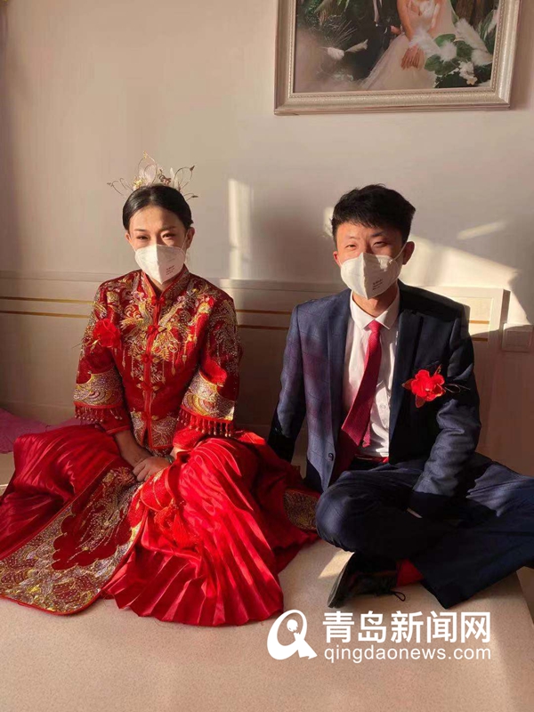 宋树棠带上口罩走出家门,将同样戴着口罩的妻子接回家,简单的做个仪式便算礼成。过程短,情谊长,两位新人虽然戴着口罩,但爱意满满,幸福多多,为紧张的疫情防控工作带来了一抹“新”意。