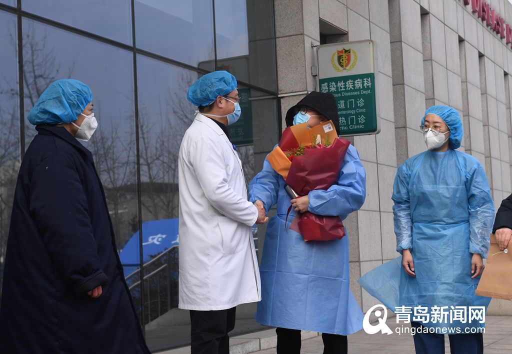 青岛市第一例新型冠状病毒感染的肺炎患者治愈出院 (摄影:王建亮)