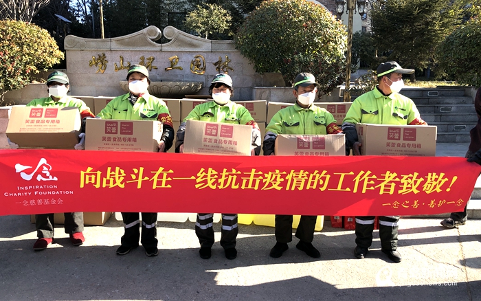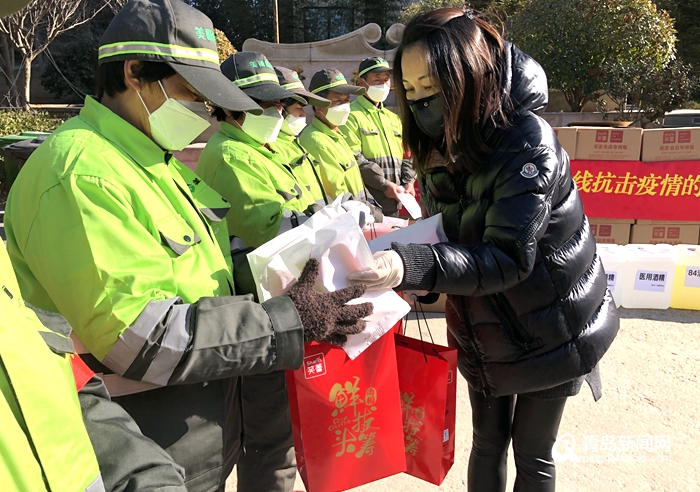 青岛新闻网2月5日讯(记者 朱颖 通讯员 张绪霞 于玲)口罩、消毒液、酒精、元宵……今天上午,青岛市一念慈善基金会为坚守在抗“疫”一线的崂山环卫工们送来“安全防护”,让“城市美容师”感受到冬日的别样温暖。