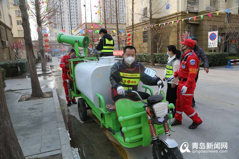 “我们正在赶往去星光岛的路上,要去那里的小区开展消毒。”2月7日上午9:40,记者联系上第七届山东省道德模范、青岛西海岸新区辛安街道办事处居民刘洪海时,他正和队友一起在昆仑山路(海尔大道)上驾驶着载有消毒水的车辆行驶。刘洪海告诉记者,昨天接到物业小区经理罗妍的电话,星光岛上的居民小区需要帮助喷洒消毒水。他们今天一大早起来配备好消毒水就驱车前往。