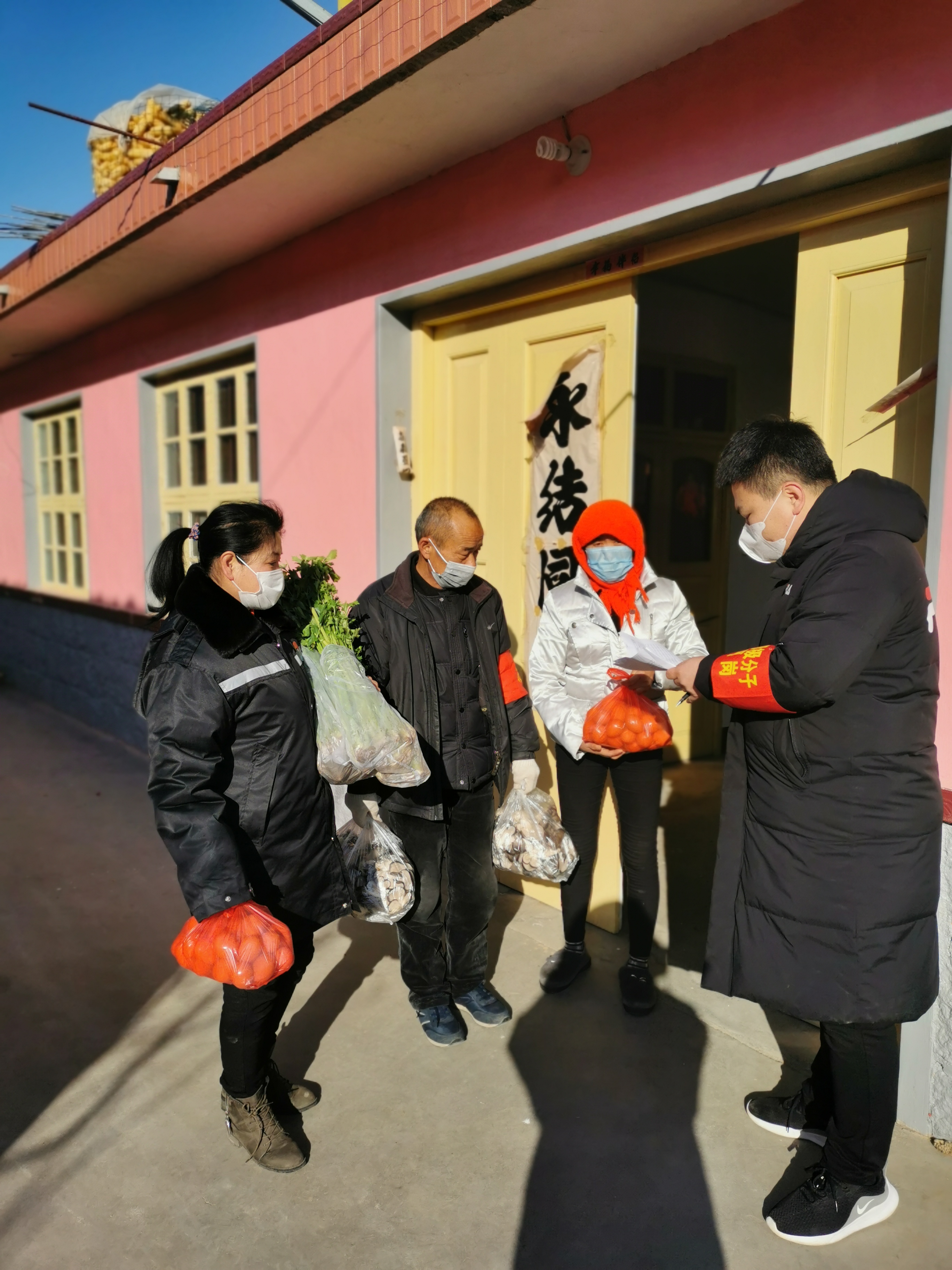 村“两委”给村民送菜上门
