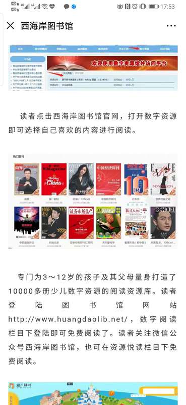 与此同时,新区图书馆面向全区新增设开通了包含8000多种、10万余本期刊、图书的网上数字期刊资源库,专设3-12岁少年儿童数字阅读资源库,提供10000多册青少年图书,市民群众足不出户就可免费下载借阅。新区博物馆开通了数字博物馆平台,先后推出文物藏品赏析系列专题,青岛贝壳博物馆、滨海学院博物馆等民营博物馆紧随其后,推出了数字博物馆藏品展示服务,让市民群众居家赏析各类藏品,领略历史文化。(周艳华)