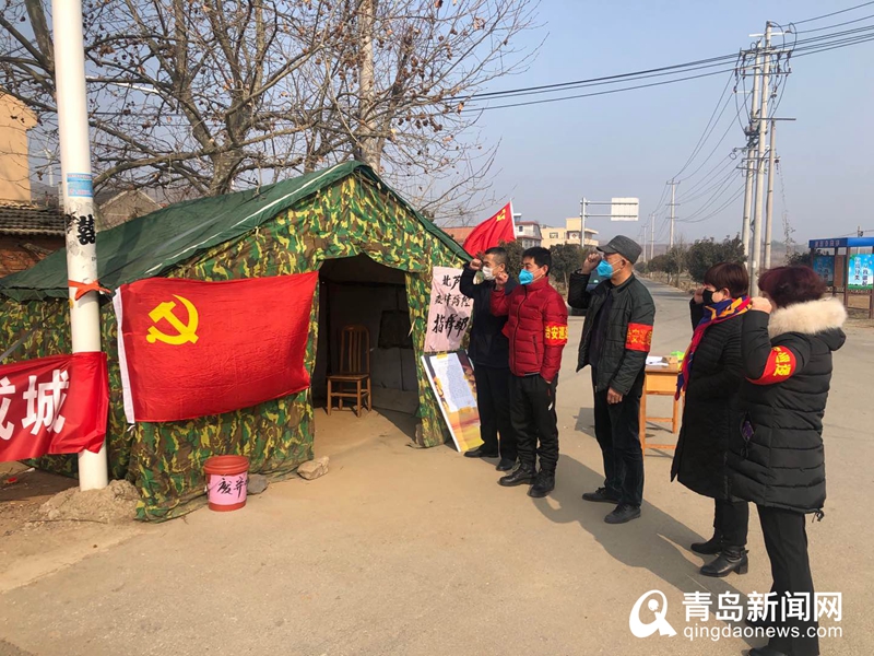 “我志愿加入中国共产党,拥护党的纲领,遵守党的章程,履行党员义务……”2月10日,即墨区田横镇各防疫布控点前再次响起洪亮的宣誓声,各村庄奋战在一线的党员们面对党旗,高举拳头,重温入党誓词。