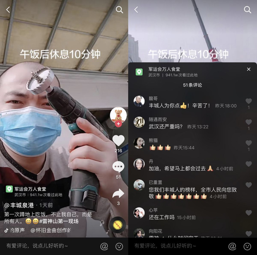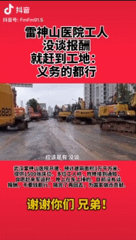 抖音用户@胜和弟弟是建设雷神山医院的工程师