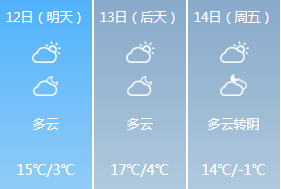 今天白天,全省天气多云转阴,东南地区局部有小雨,鲁西北的西部、鲁西南和半岛内陆地区明晨前后有雾或轻雾。11日夜间到12日白天,半岛地区天气阴有小雨转多云,其他地区天气阴转多云,12日夜间到13日白天,全省天气多云。