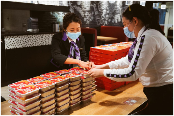 “我们经常会收到来自顾客的一些鼓励,也会将这种正能量传递给更多的顾客,还有防疫一线的工作人员。”王迪说,他们也经常在安心卡上画上“爱心插画”,希望能够为防疫一线工作人员带去爱心力量。为了让更多抗疫一线的工作人员吃上热腾腾的食物,必胜客将食物放在烫手包里配送,同时,为了最大限度保障消费者和配送员安全,必胜客采用“无接触”配送模式。