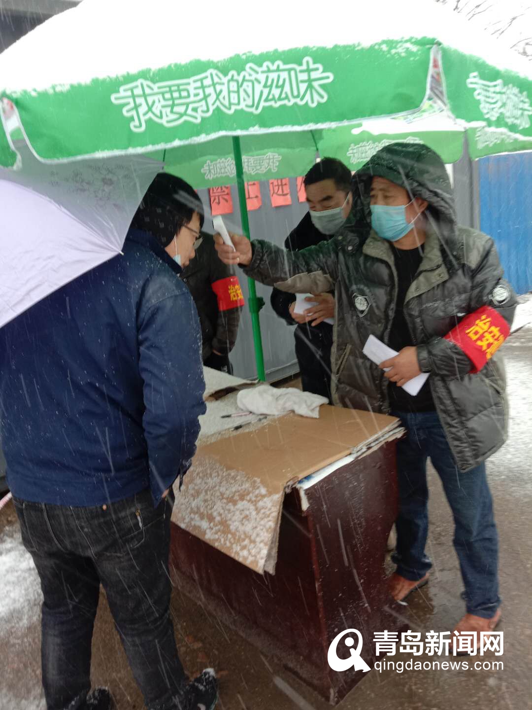 面对恶劣天气,棘洪滩街道防疫一线的各位工作人员战严寒、抗风雪,始终坚守在各疫情防控检查站点,对进入辖区的车辆进行检查,检测人员体温,加大疫情防控力度,同时做好雨雪恶劣天气道路交通管理工作,用责任和担当筑牢抗疫一线,坚决打赢疫情防控阻击战。