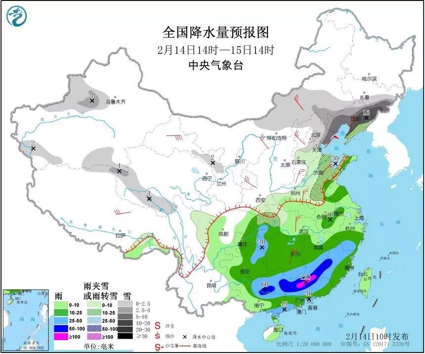 ,鲁中的南部、鲁东南和半岛南部地区有中雨转中雪局部大雪,鲁西北的西部和鲁西南地区有小雨转小雪。半岛地区南风3~4级转北风5~6级阵风7~8级,鲁西北和鲁西南地区北风4~5级阵风6~7级,其他地区南风3~4级转北风4~5级阵风6~7级。最低气温:鲁西北、鲁中山区和半岛内陆地区-4℃左右,半岛沿海地区1℃左右,其他地区-1℃左右。