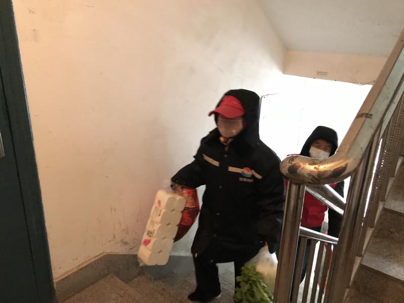 在为居民送去生活物资的同时,社区还为隔离居民清理楼道生活垃圾、取快递等“跑腿业务”,在特殊时期为他们送上“特别的爱”。
