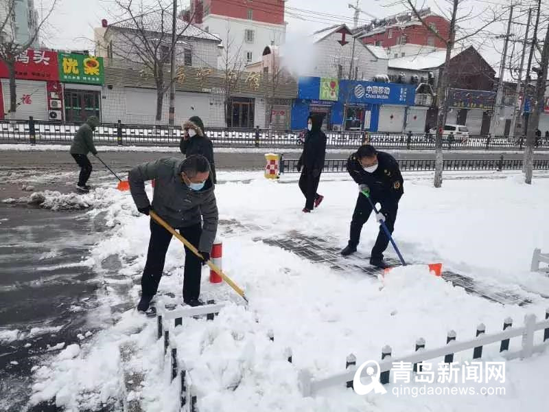 18个镇街执法中队除了把自己中队周围清扫外,还主动到执勤路口一边执勤、一遍清扫积雪。