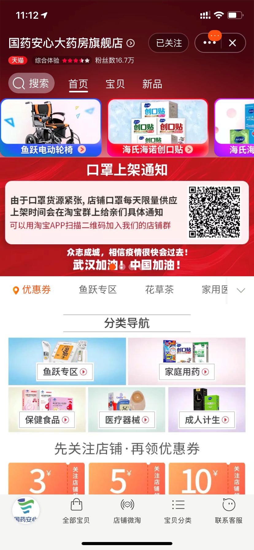 口罩—切换到商场页面—点击自营就可以看到啦。
