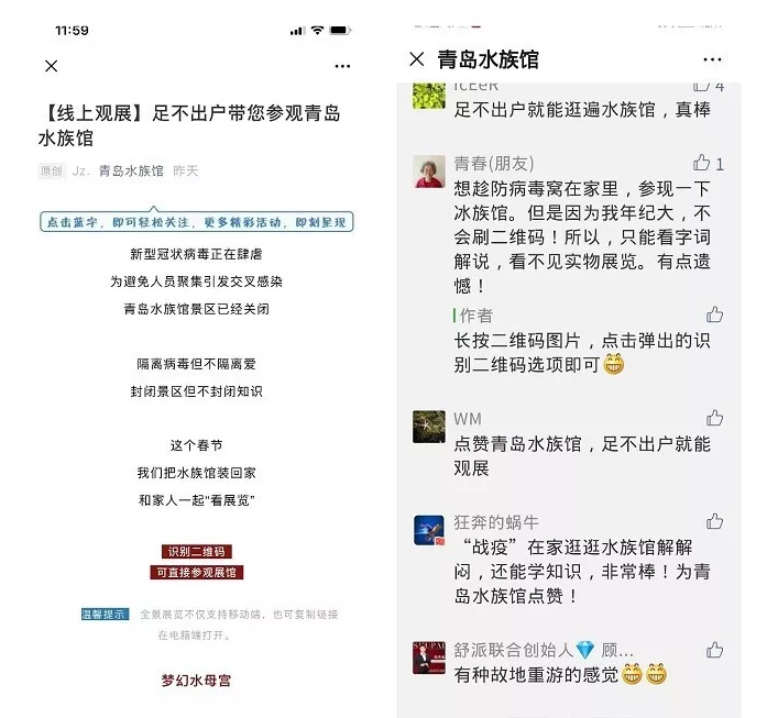 依托有线电视“科普青岛”栏目,上传科普中国权威发布的防疫科普宣传片,在显著位置播放防疫视频,供100万户电视用户观看和点播;编辑制作防控新型冠状病毒科普宣传片,依托全市837台数字科普通终端,每天8个小时滚动播放,受众10万余人次;依托青岛市科协、科普青岛、青岛水族馆等微信公众号发布抗疫资讯、科普文章,截至目前,共刊发原创文章100余篇,发布抗疫科普信息500余篇,总阅读量200万余人次;举办以“用知识抗击疫情、用科学粉碎谣言”为主题的抗击疫情网络科普有奖挑战赛,开展“猜灯谜、涨知识、疫情防控需知道”有奖问答等系列活动,累计近20万人次参与有奖竞答,科普青岛公共号粉丝增长423.6%;在“青岛市科协”“科普青岛”微信公众号上线科学战疫行动,提供知识问答、谣言粉碎、同城查询、疫情地图等交互服务功能;开展应急科普作品创作活动,用优质科普作品凝聚“战疫”正能量,到目前为止,已征集各类抗疫作品450余件。