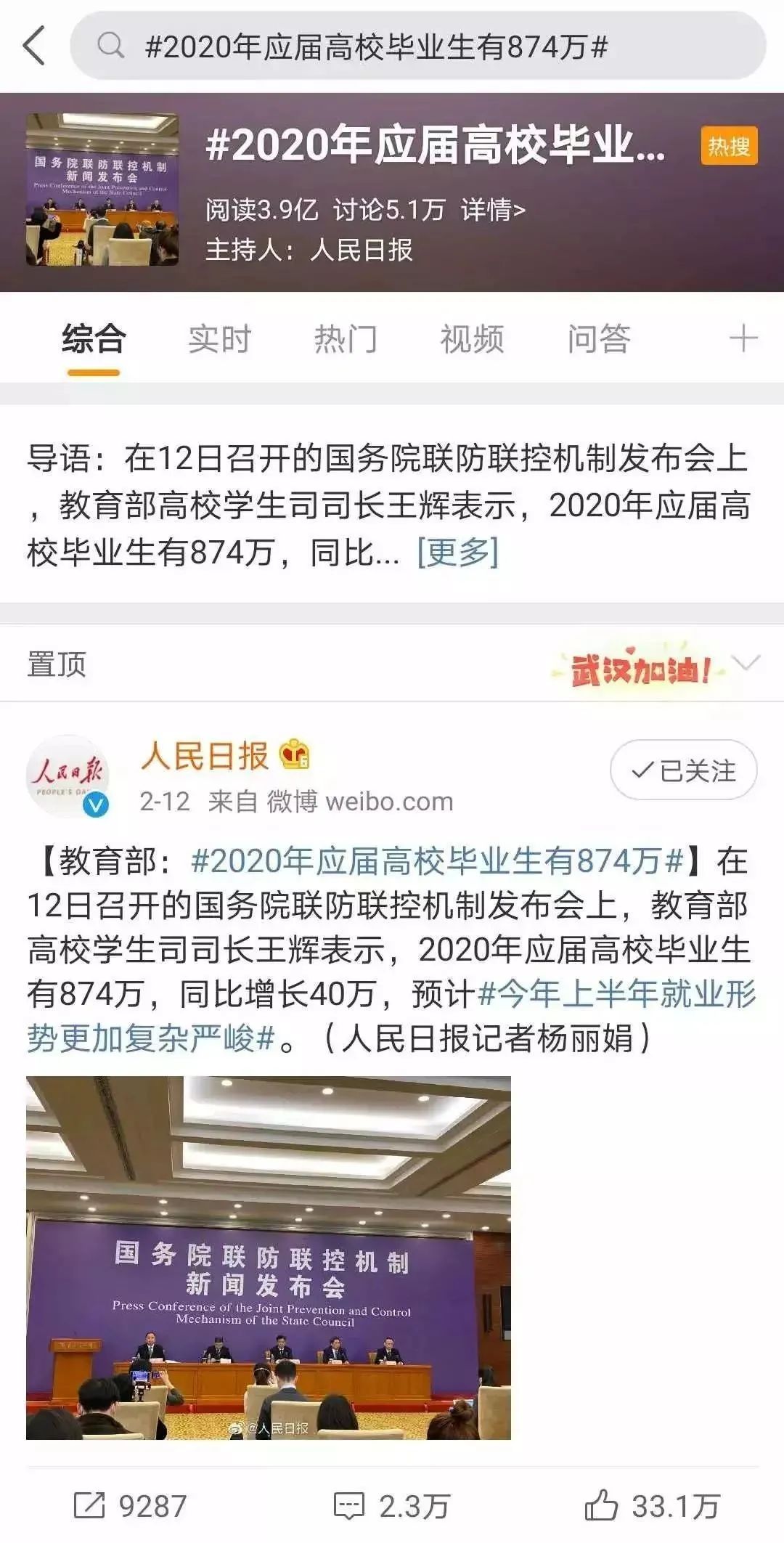 #2020年应届高校毕业生有874万# 在疫情防控期间登榜热搜