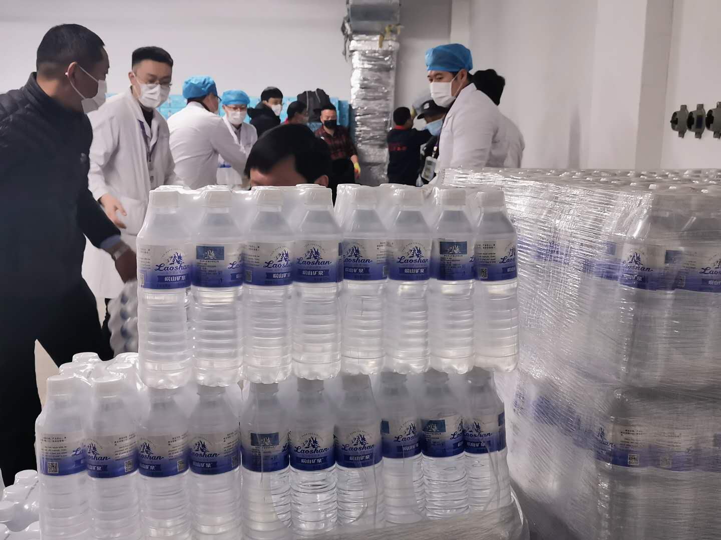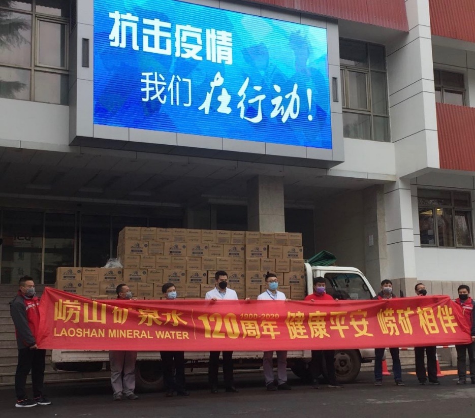 崂山矿泉向青岛市新型冠状病毒肺炎疫情防控的五家定点医院(青岛大学附属医院、青岛市市立医院、青岛海慈医院、青岛山大齐鲁医院、青岛市妇儿儿童医院)捐赠30万余瓶崂山矿泉水,目前这批物资已经成功到达疫情防控一线的医护人员手中,满足了医护人员在抗“疫”期间及时补充健康好水。