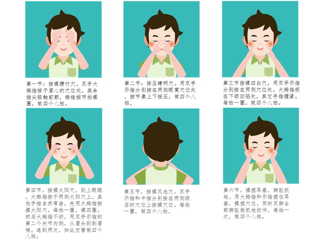我们创建了一套预防近视护眼健身操,帮助同学们居家时在较小的空间里舒缓、协调和活动全身肢体和关节,同时也结合了对眼睛的活动锻炼和放松休息。建议在做操之前和之后最好闭目休息20秒钟,以更好有利于眼睛恢复疲劳。