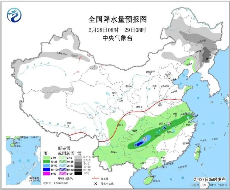 28日至3月1日,西南地区、黄淮南部、江淮、江南、华南等地将有小到中雨,局地大到暴雨并伴有雷电或小冰雹等强对流天气。