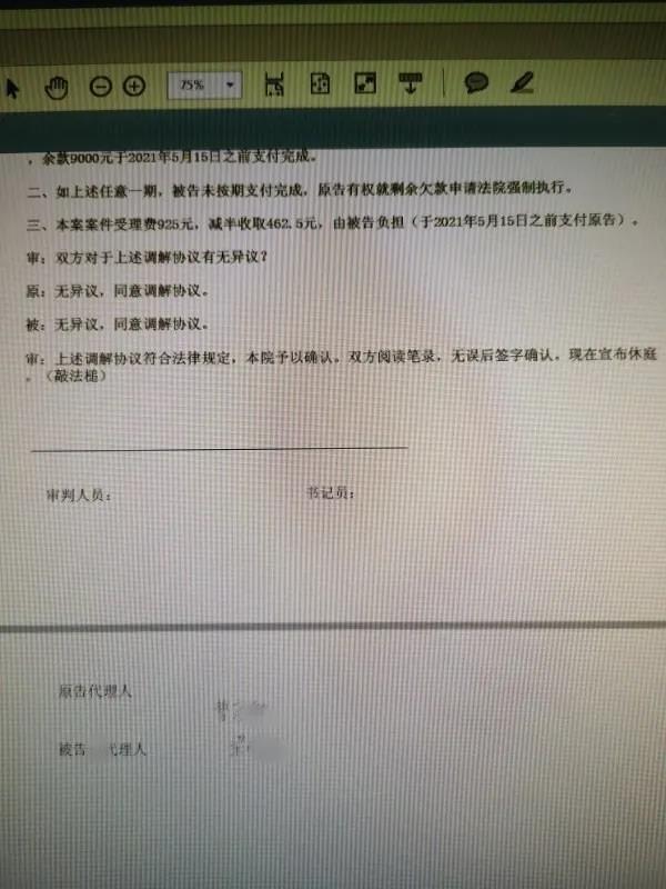 在法官调解下,双方当事人逐渐形成共识,最终达成调解协议并在线上确认笔录并签字。