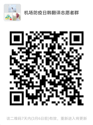 (一)24小时网络报名:关注“青岛共青团”微信号,扫描“机场防疫日韩翻译志愿者”群二维码入群。或填记个人信息发送至邮箱zyzxh@126.com