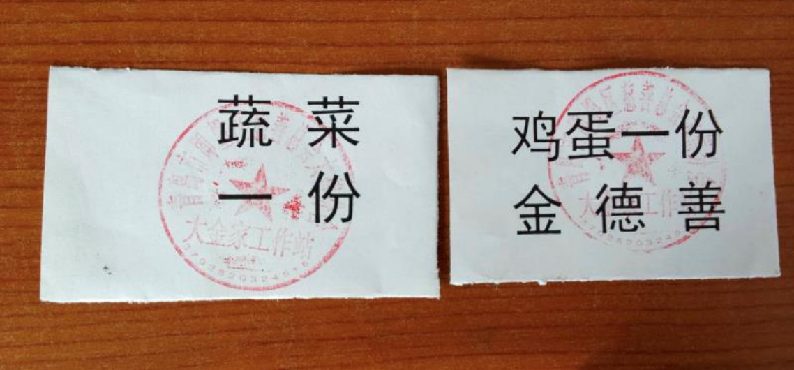 “一开始我们也是统一采买或者有热心人捐助了之后,逐家逐户统一送菜,比方说一次性送上2斤茭瓜、5斤鸡蛋,但是我们发现很多家庭只有老人或者只有自己一个人的,他们吃不了这么多,放着还怕坏了,就非常为难。”大金家村会计李静说,“后来我们一研究,干脆用凭票兑换的形式,把新鲜蔬菜和副食品,分放在两个兑换点,村民们有需要的时候,打电话约个时间,凭票来换就行,不方便出门的老年人,我们就按他们的需求随时上门送,这样既避免了他们出村采购,又减少了人群聚集,也不会造成浪费。”