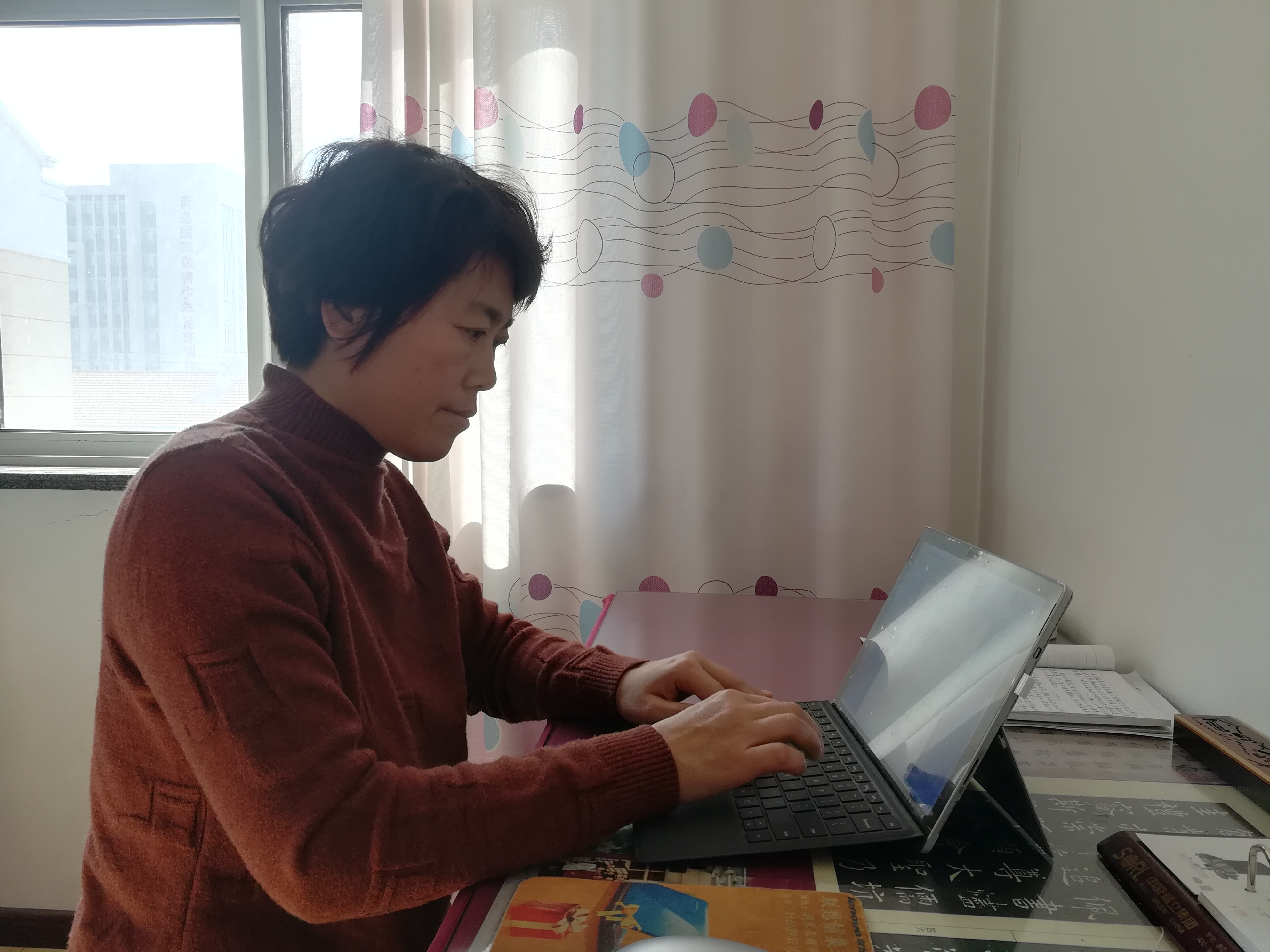 胶州市铺集镇铺集小学教师台功花家庭是山东省绿色家庭。台老师同时担任胶州市妇联“时钟花母亲联盟”的家庭教育老师,致力于每一名孩子的家庭教育和健康成长。疫情当前,台功花不仅线上指导学生做好防护,并填写了一首词《卜算子•防疫情》,通过微信平台给孩子们做科普。她说,特殊时期,孩子们在家里好好学习就是为国家做贡献。