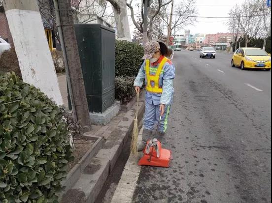 在防疫阻击战的关键时期,岛城环卫工人坚守工作一线,从城市“美容师”变成群众的“守护者”,为营造“干净、整洁”的城市环境默默付出辛勤的汗水。面对突发的疫情,李沧环卫工人陈学明第一个打报告申请坚守岗位。测量体温、登记信息、穿好环卫服、佩戴口罩和手套、拿上消毒药剂桶、带上清洁工具……在青岛市四流中路上,陈学明的动作娴熟而利索。陈学明的妻子、两个儿子和儿媳都是环卫工人,这个春节,他们都坚守在环卫岗位上,每天早上5点半就到岗。与平时不同的是,陈学明和家人不仅负责日常的环卫作业,确保城市道路的清洁和垃圾日产日清,还要对果皮箱、废弃口罩垃圾桶进行全面消毒清洗工作,尤其要重点加强对卫生死角的清理和消毒,并处理好那些丢弃的一次性口罩、手套,每天都要进行至少3次消毒,确保防疫无死角。疫情期间时间紧张,虽然环卫人有暖暖和和的休息室,陈学明一家中午经常在寒风中坐在马路牙子旁吃午餐。他们说要当好“橙衣战士”,苦点累点都不怕,为防控疫情出点力。
