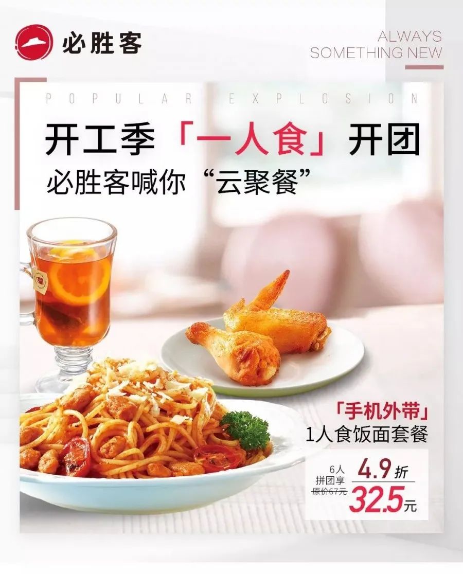 特殊时期,必胜客准备了“一人食”,意面、披萨、鸡翅、奶茶随意配,还有五折优惠等着你!