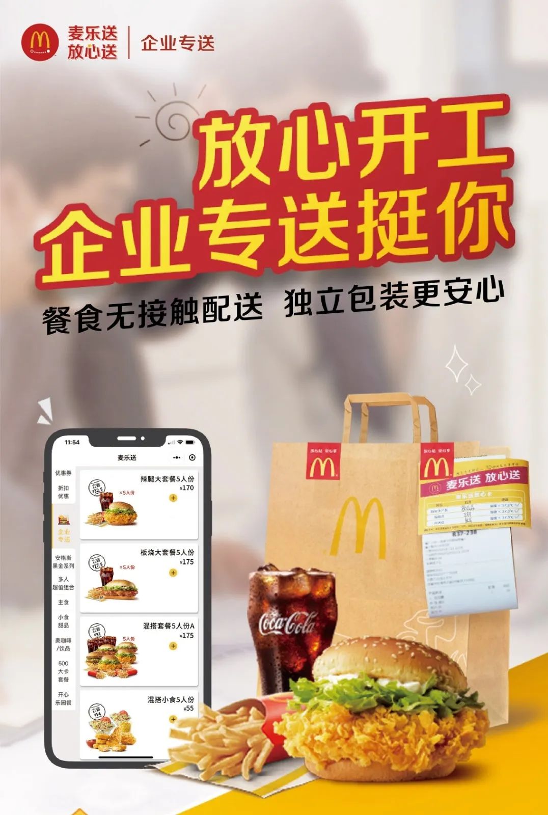 麦当劳企业专送来了,一起点更优惠,还有满500减100,满300减50的优惠,叫上公司的小伙伴一起点餐吧!