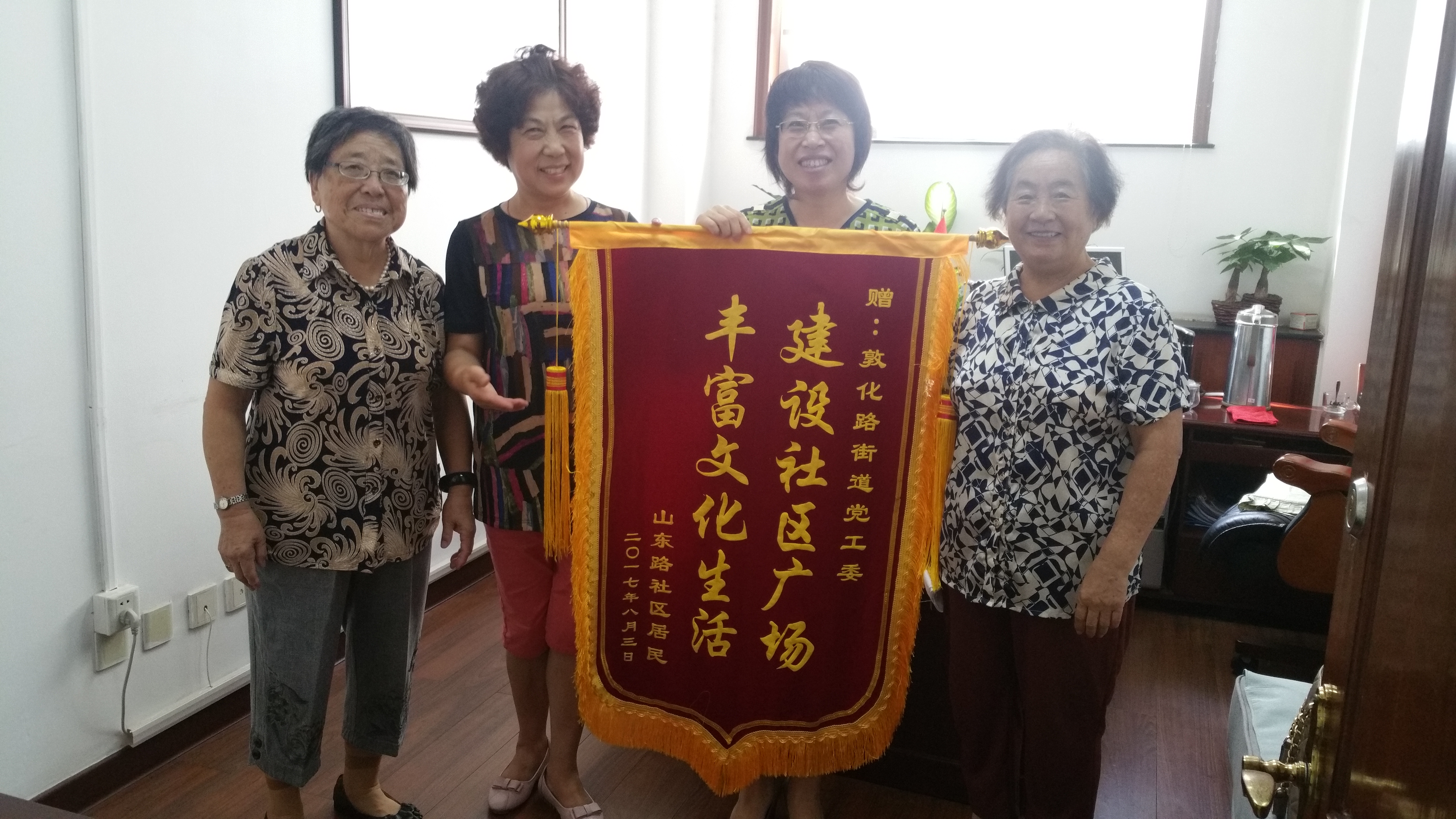 2017.8.03王新宁接受辖区居民送来的锦旗