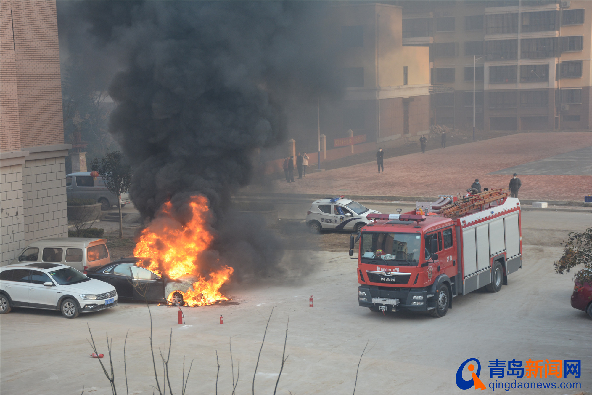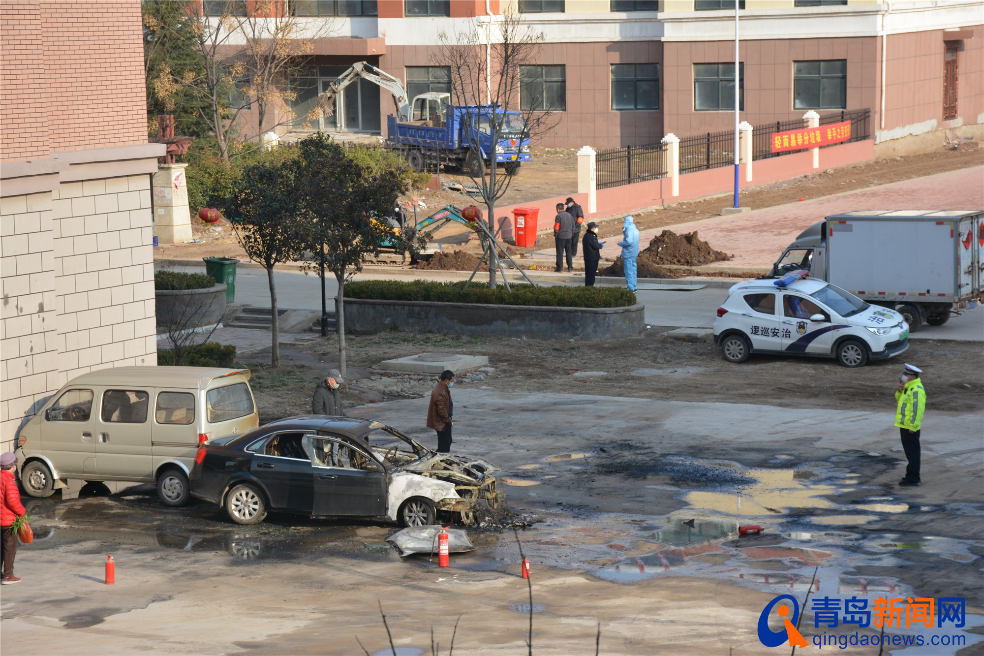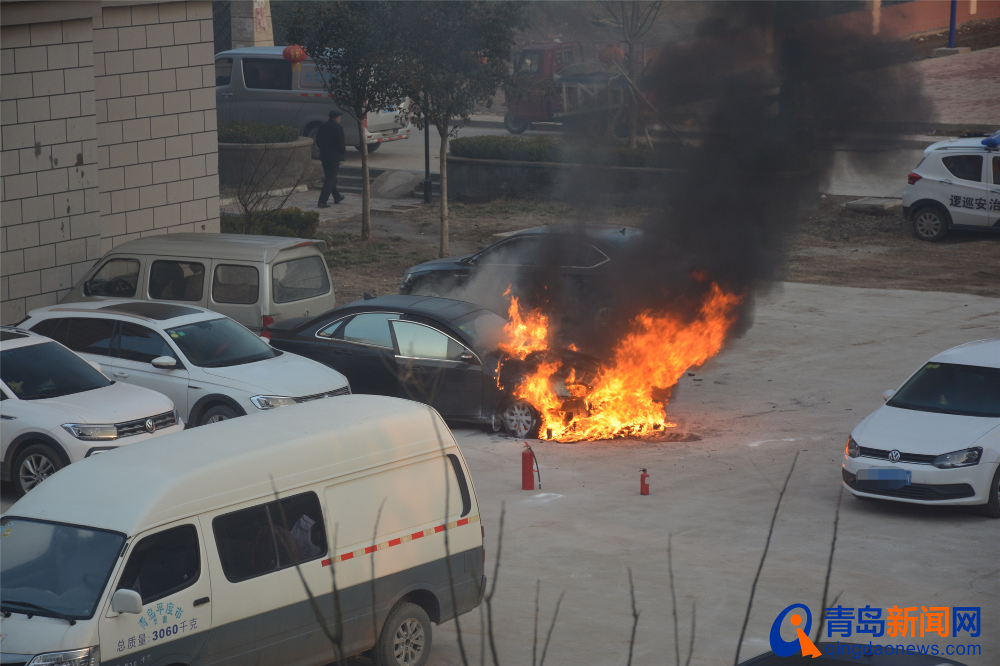 青岛新闻网记者获悉,着火车辆的车主姓刘,男性,30岁左右,家住本小区,事故是在其上车后发生。车辆着火后,该车主被困车内无法脱身,被周围目击的居民用灭火器砸破车窗救出。车主被救后,意识尚清醒,但受到了不小的惊吓,随后被赶来的急救车带往当地医院救治。