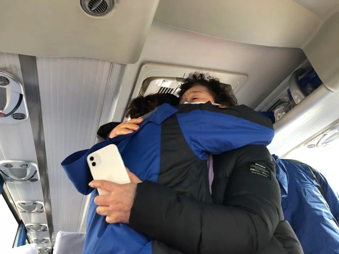 另一边,得知女儿即将出发的舒志荣,心,提到了嗓子眼。慌忙中赶到集合点,车还未停稳,就打开了车门,在五辆载满医护人员的大巴车上看到整装待发的张继东后,舒志荣紧紧拥抱了女儿……