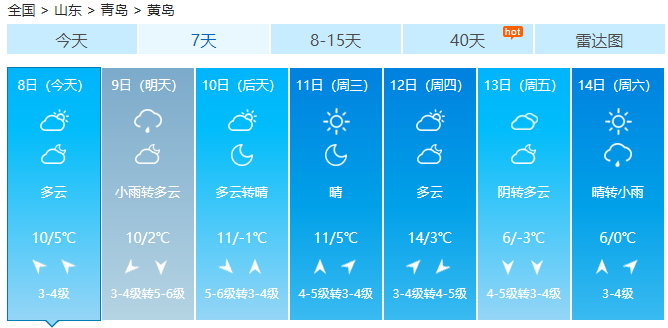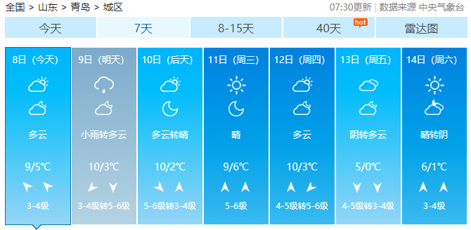 小编看了一下下周青岛的天气预报