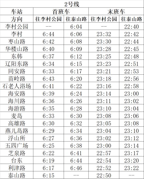 同时为应对疫情期间错峰上下班情况,3、11号线工作日早高峰时间适量延后,2、11号线晚高峰时间适量提前,更加方便乘客出行。其他行车安排不变。各线路车站首末班车时间不做调整。
