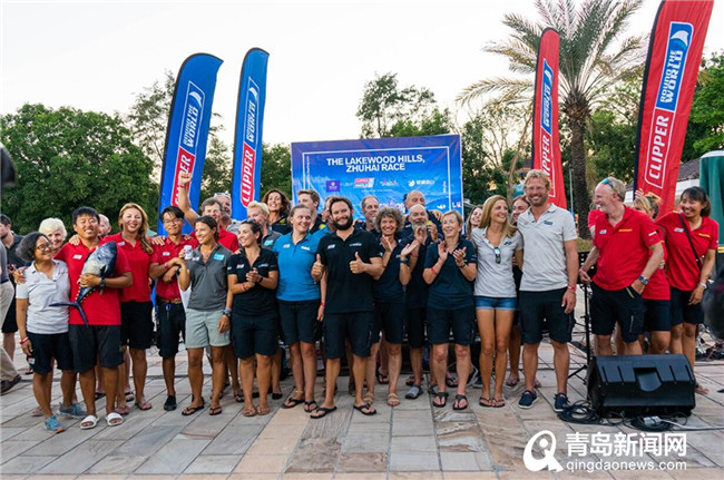 参加并完成了第五赛段的全体船员在本次比赛结束后将结束他们的比赛旅程了,克利伯帆船赛竞赛总监马克.莱特邀请这些船员登台合影留念,并对他们在比赛中取得的好成绩再次表示祝贺。