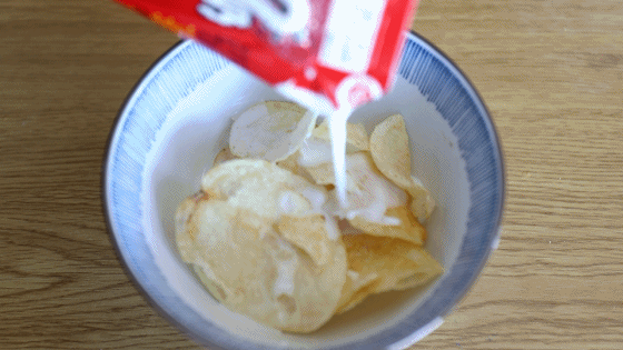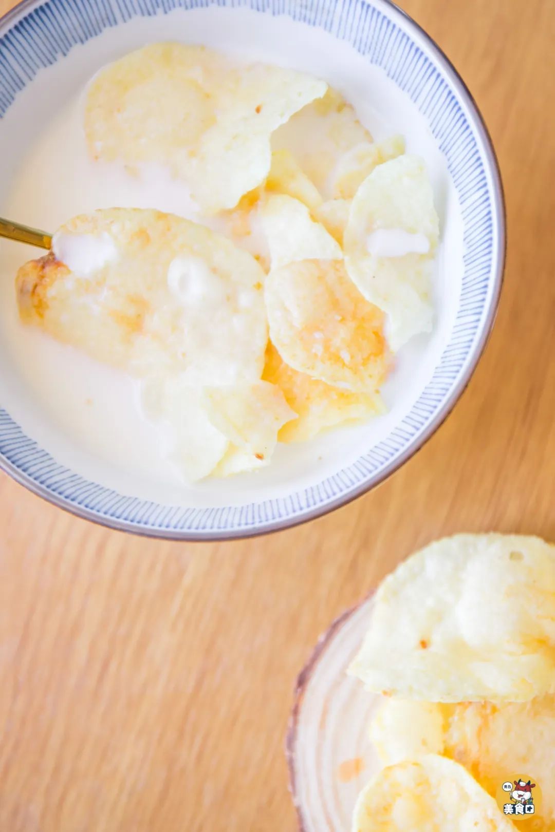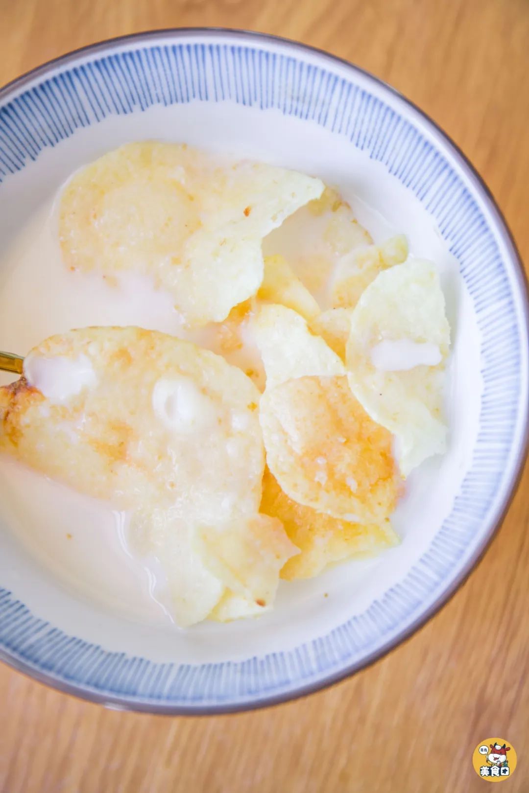 先倒入薯片再加入旺仔牛奶,等薯片软化后再捣碎,有没有种营养早餐的既视感?