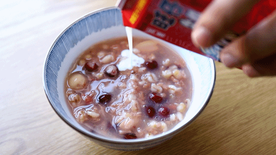 在八宝粥中加入适量的旺仔牛奶,搅拌均匀后,奶香浓郁,时刻诱惑着你的味蕾。