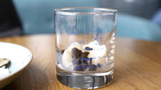 将奥利奥的夹心去掉然后捣碎成巧克力碎,然后一层一层铺起来,速度要快,不然很容易化掉哟!