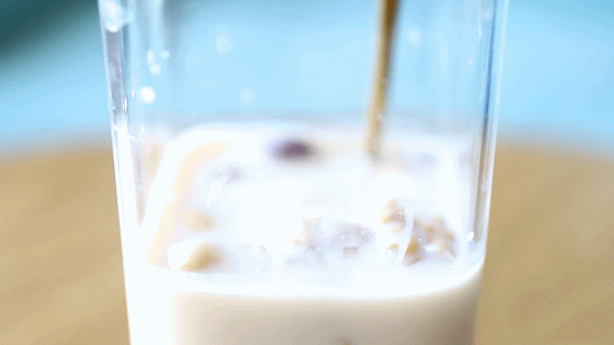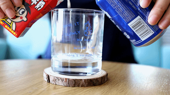 操作步骤也很简单,先放入旺仔再倒入咖啡,搅拌均匀后立马来一口。